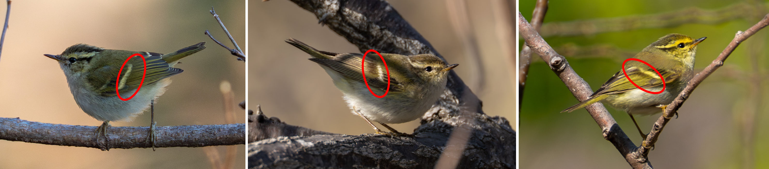왼쪽부터 연노랑허리솔새, 노랑눈썹솔새, 노랑허리솔새다.