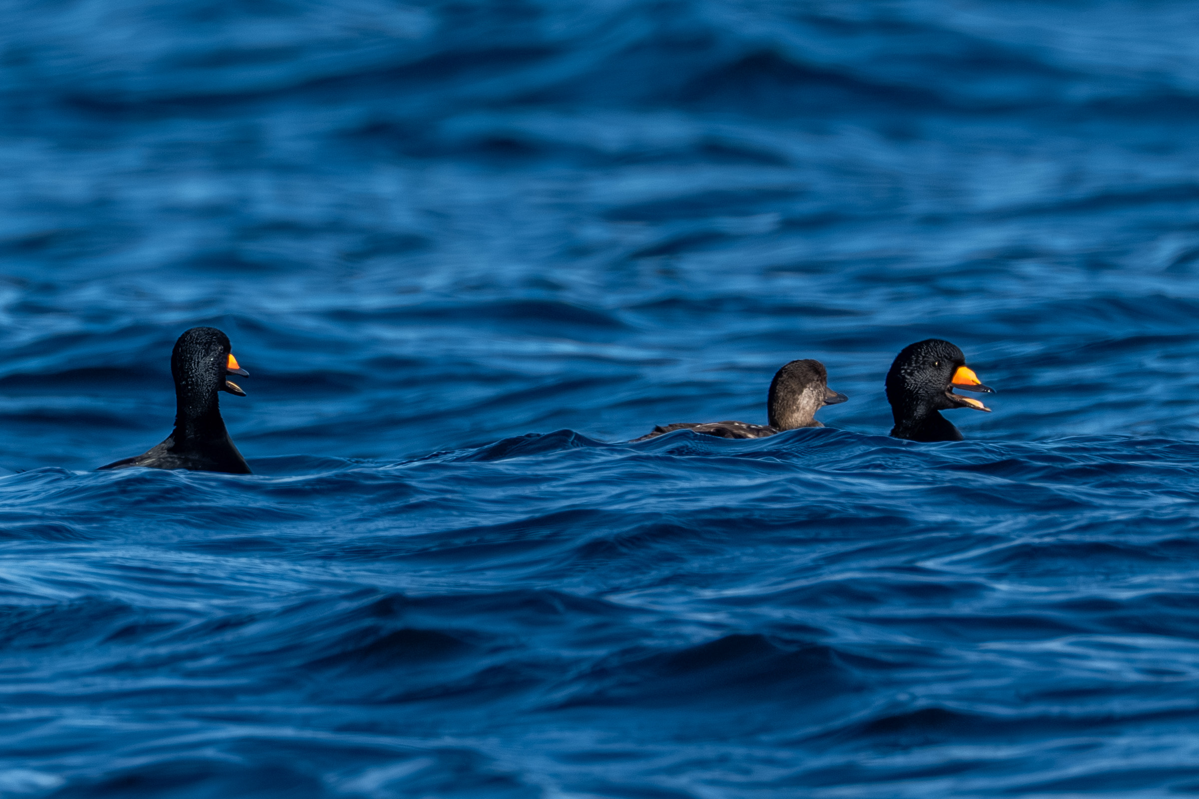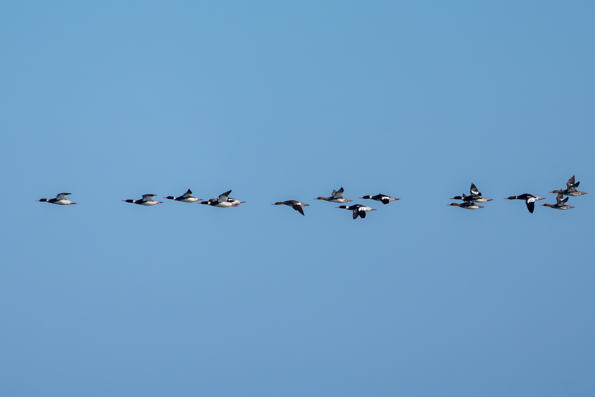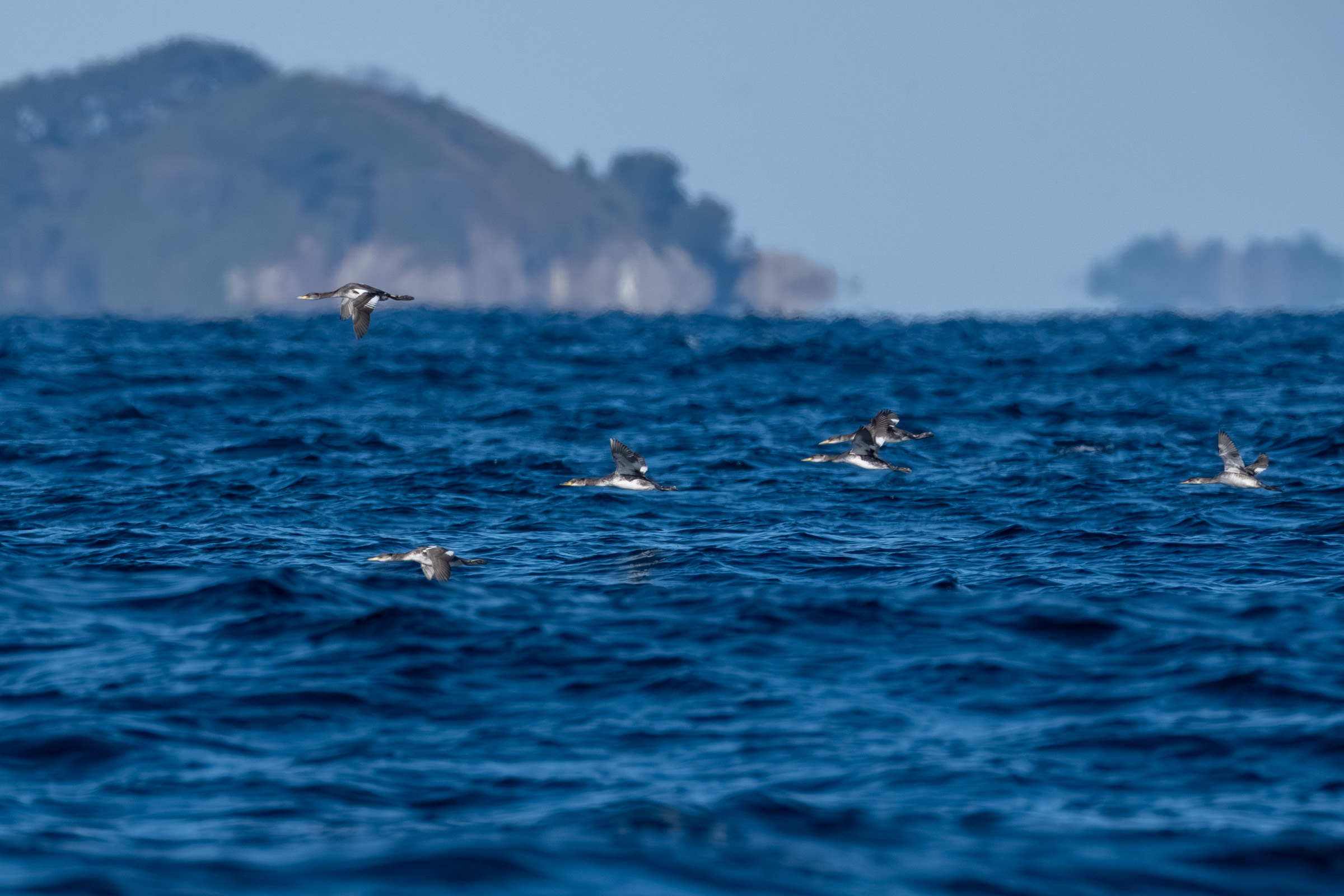바다비오리들은 무리를 지어 계속 날아다니고...