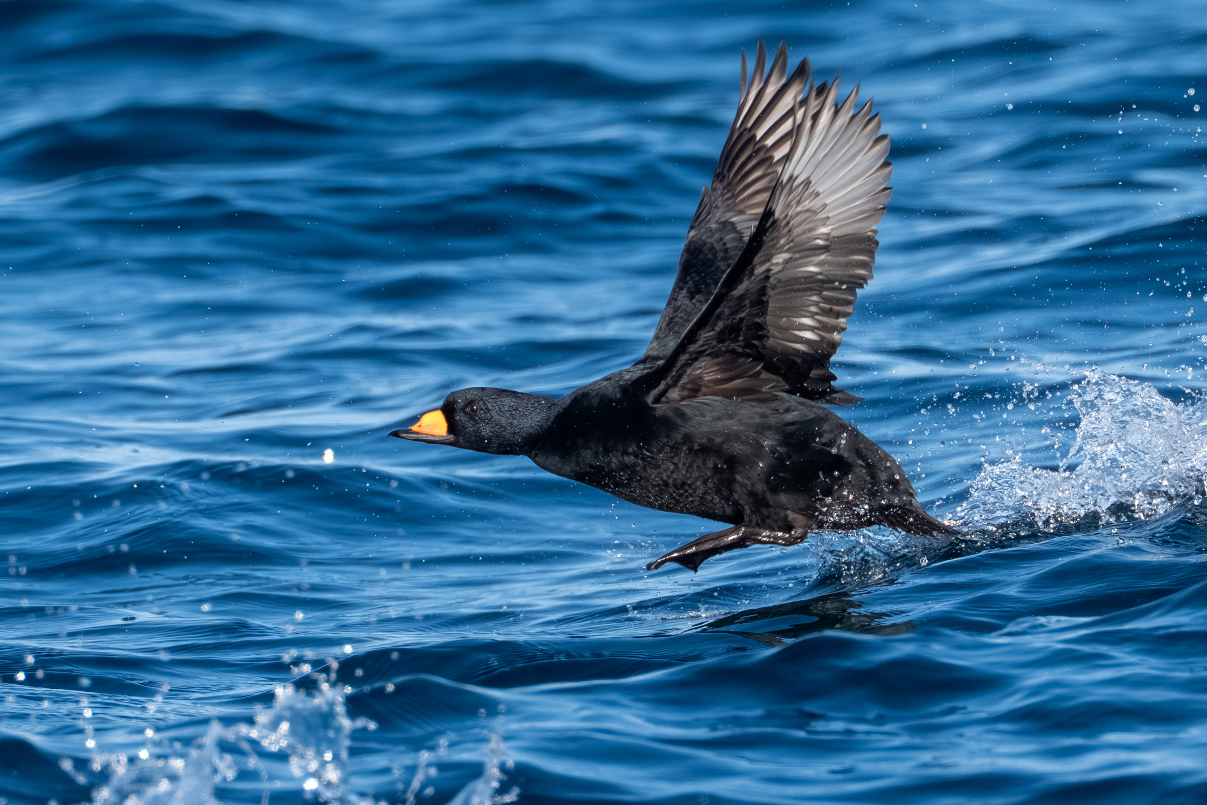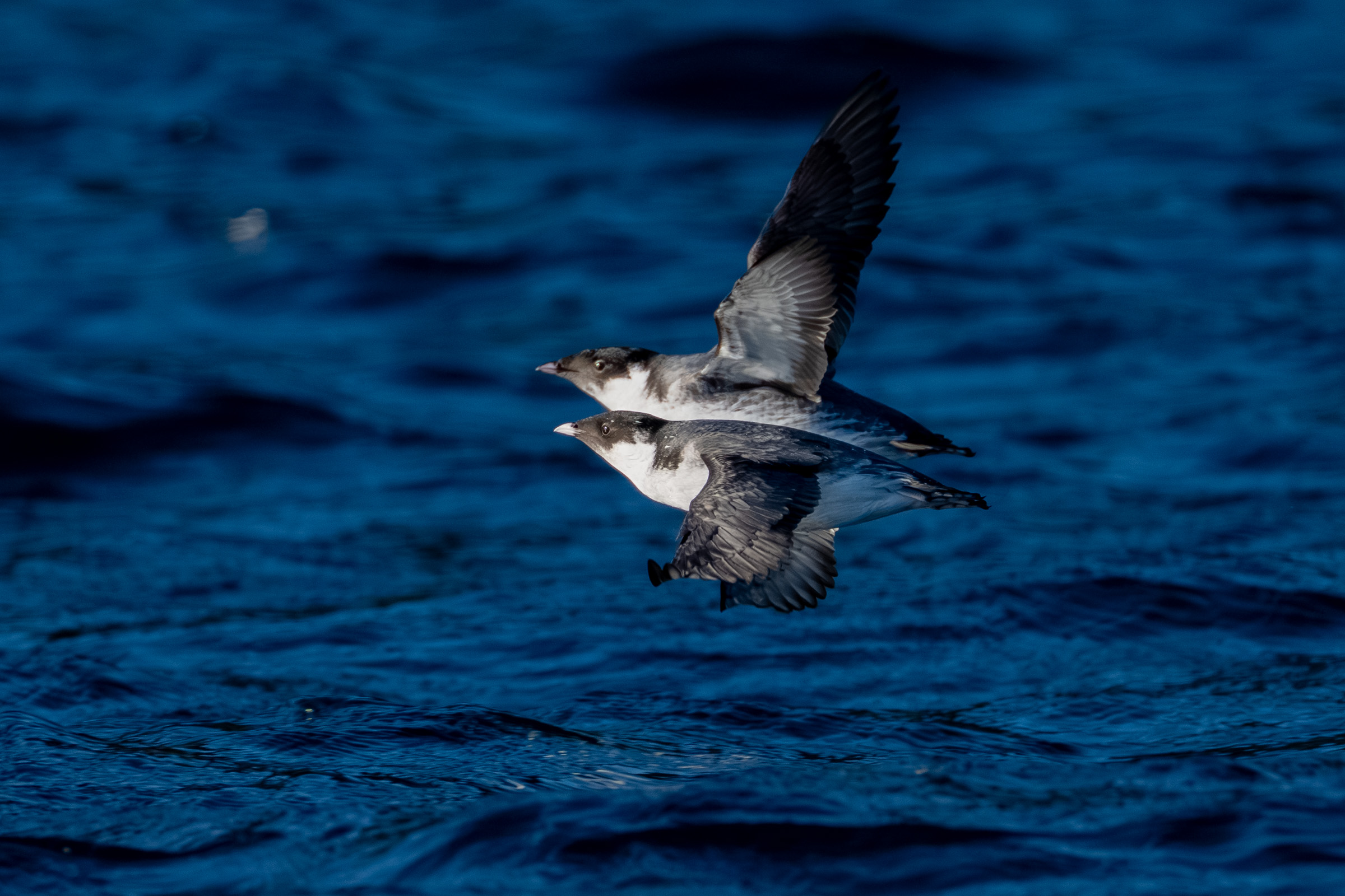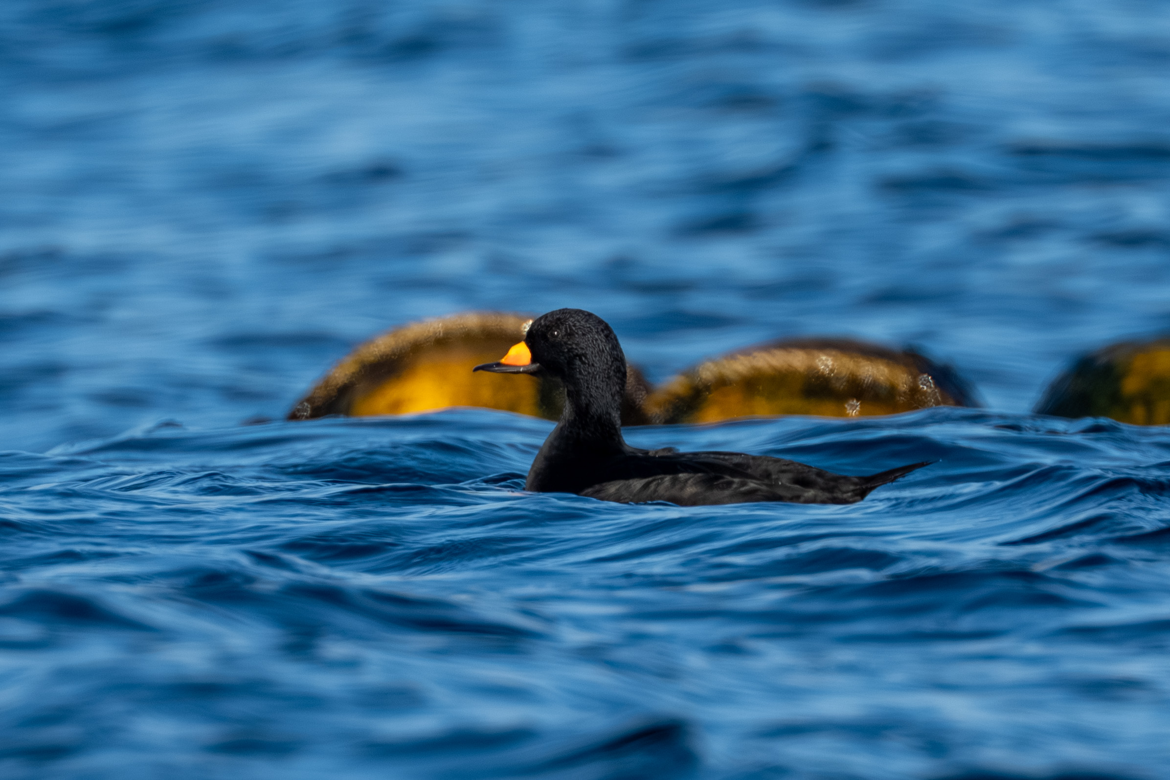 바다비오리들은 무리를 지어 계속 날아다니고...