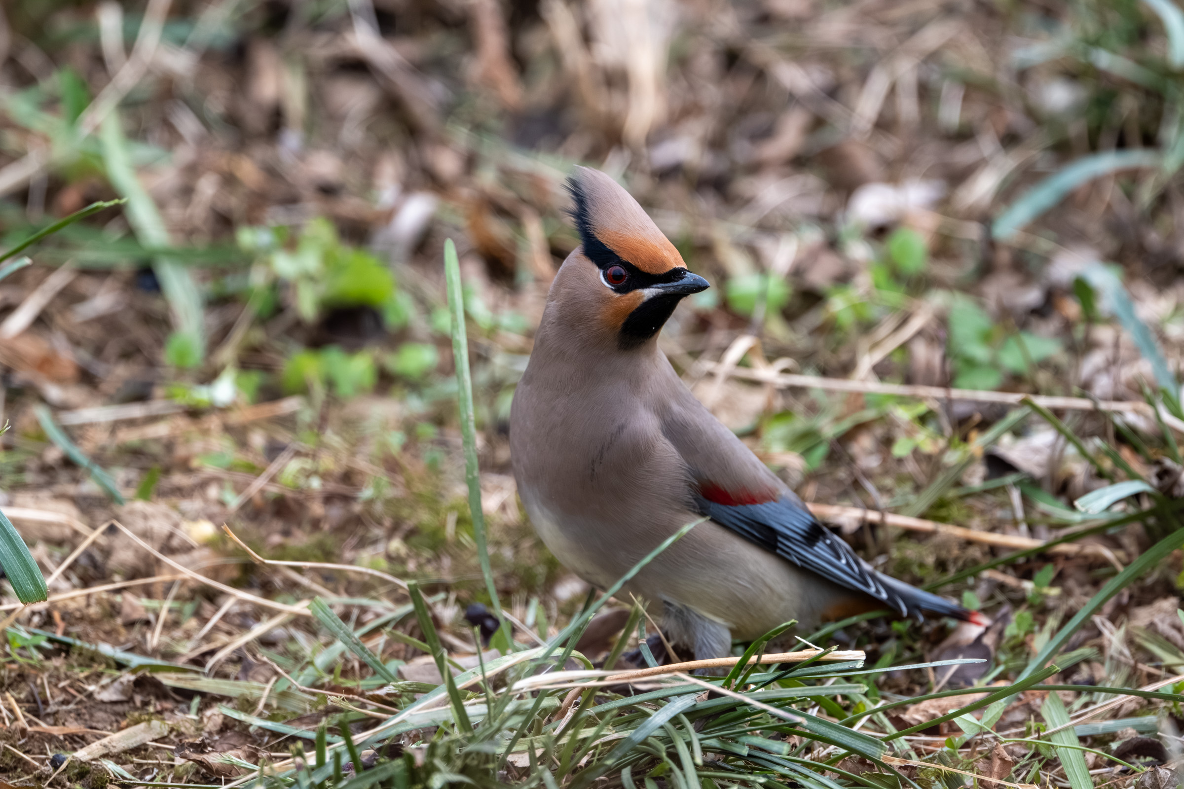 홍여새 수 십 마리가 언덕에서 먹이 활동 중이었는데,