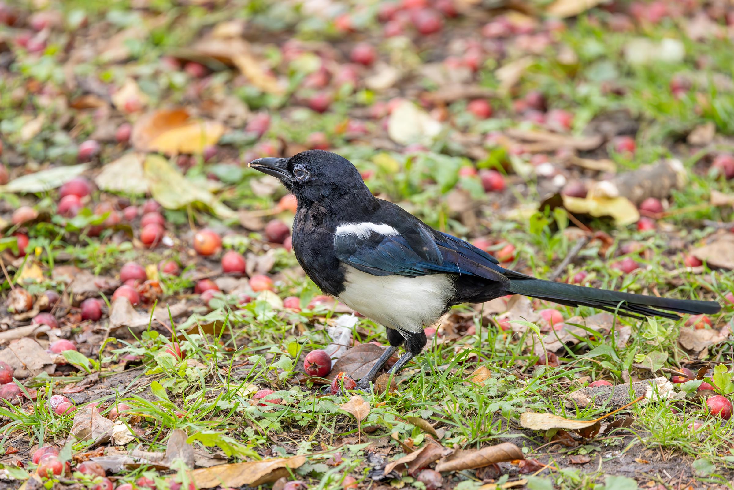 꽃사과를 먹고 있던 대륙검은지빠귀(참새목 / 지빠귀과, 나그네새)