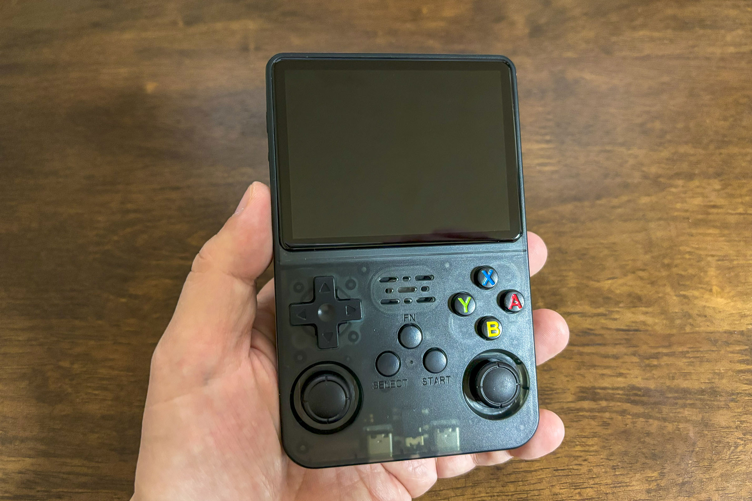 생긴 건 딱 닌텐도 겜보이 컬러(Gameboy Color)를 빼다 박았다. 아날로그 조이스틱 두 개만 추가된 느낌. 그래도 손에 딱 잡히는 크기라 휴대하기 아주 좋아 보인다. 배터리는 USB 5V로 충전하면 되는 방식이라 충전도 간편.