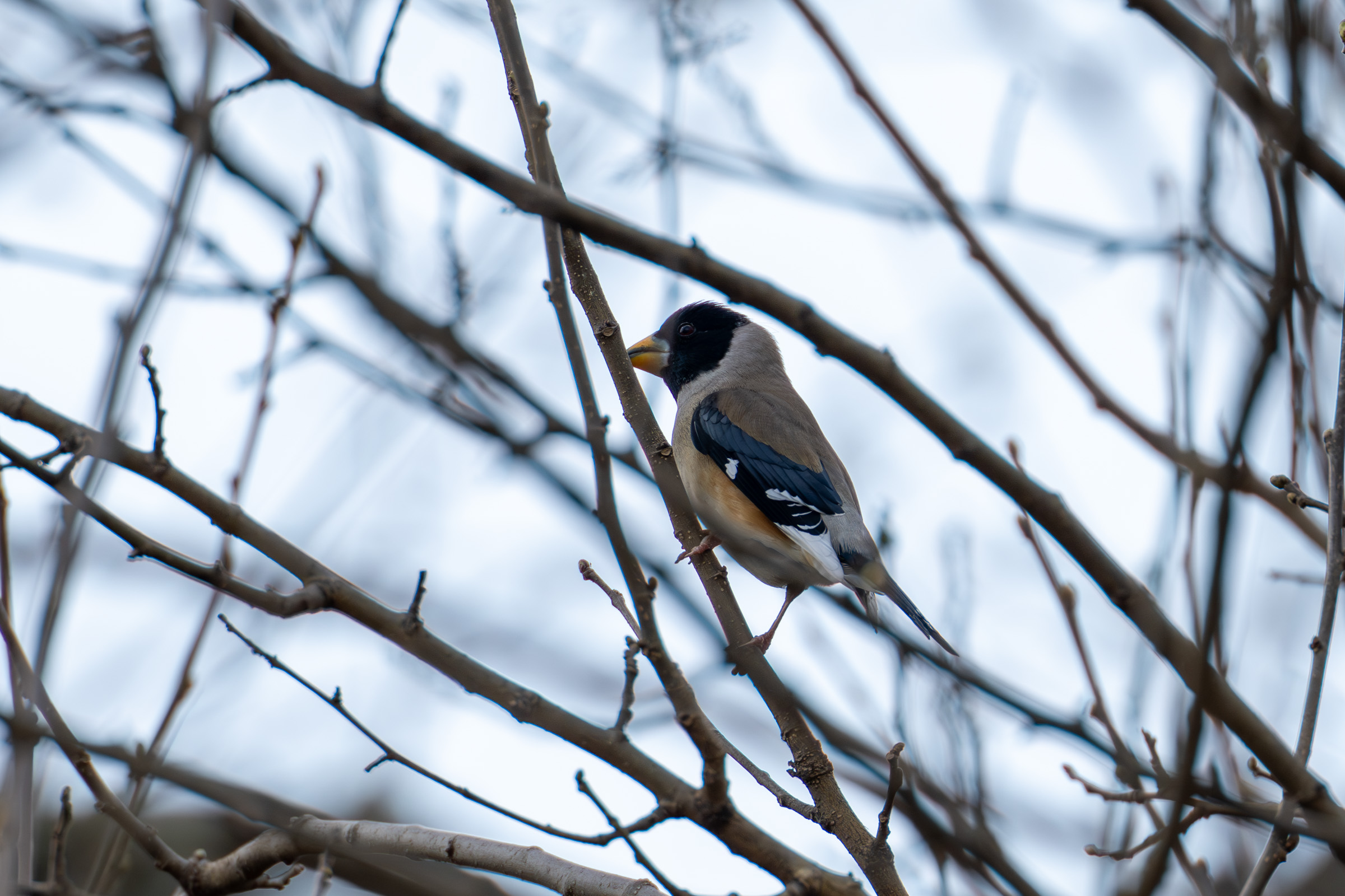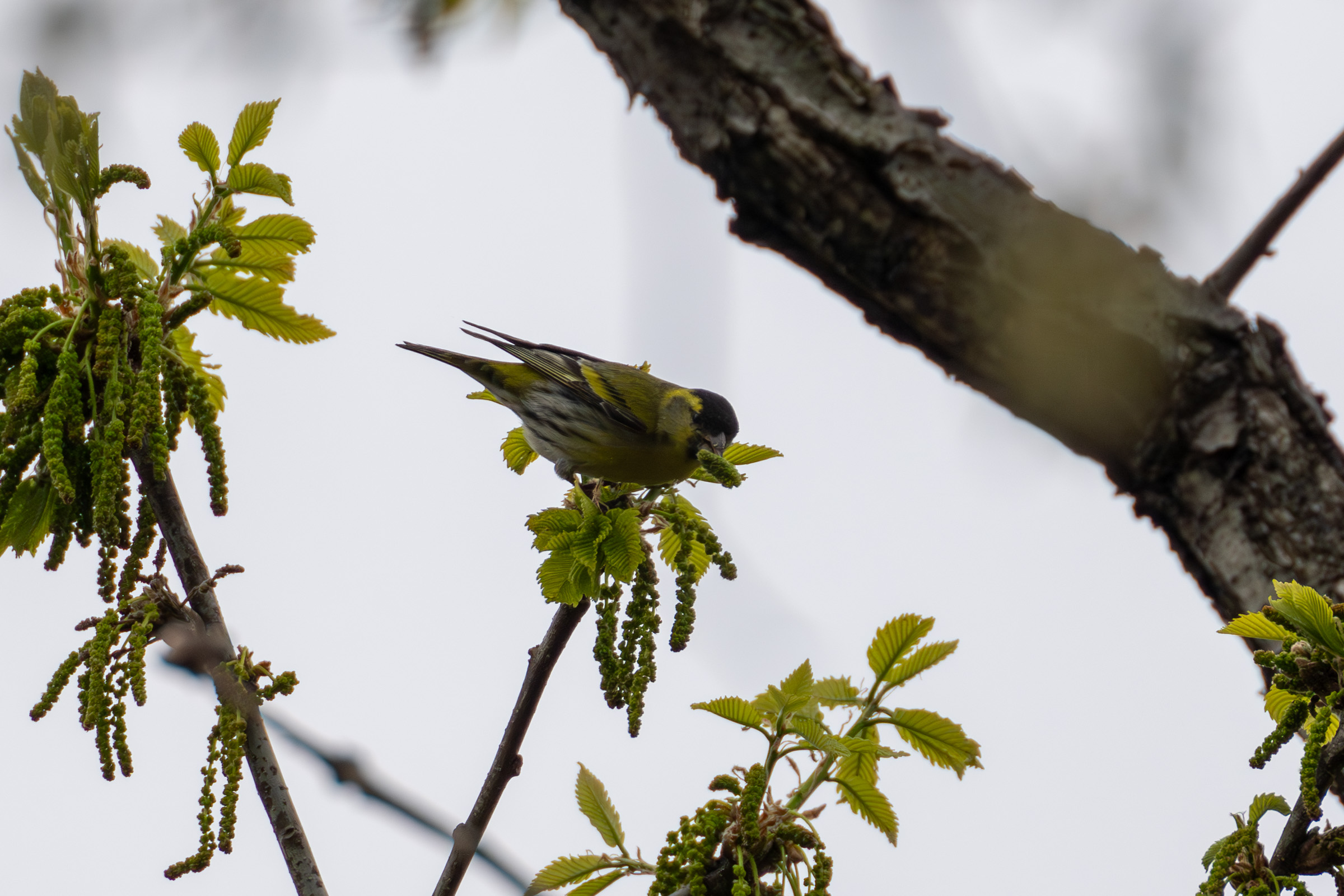 되새를 보고 있는데 자작나무에 잔뜩 붙어 있는 작은 새들을 발견. 눈이 침침해서 박샌지 방울샌지 구분이 안됨.