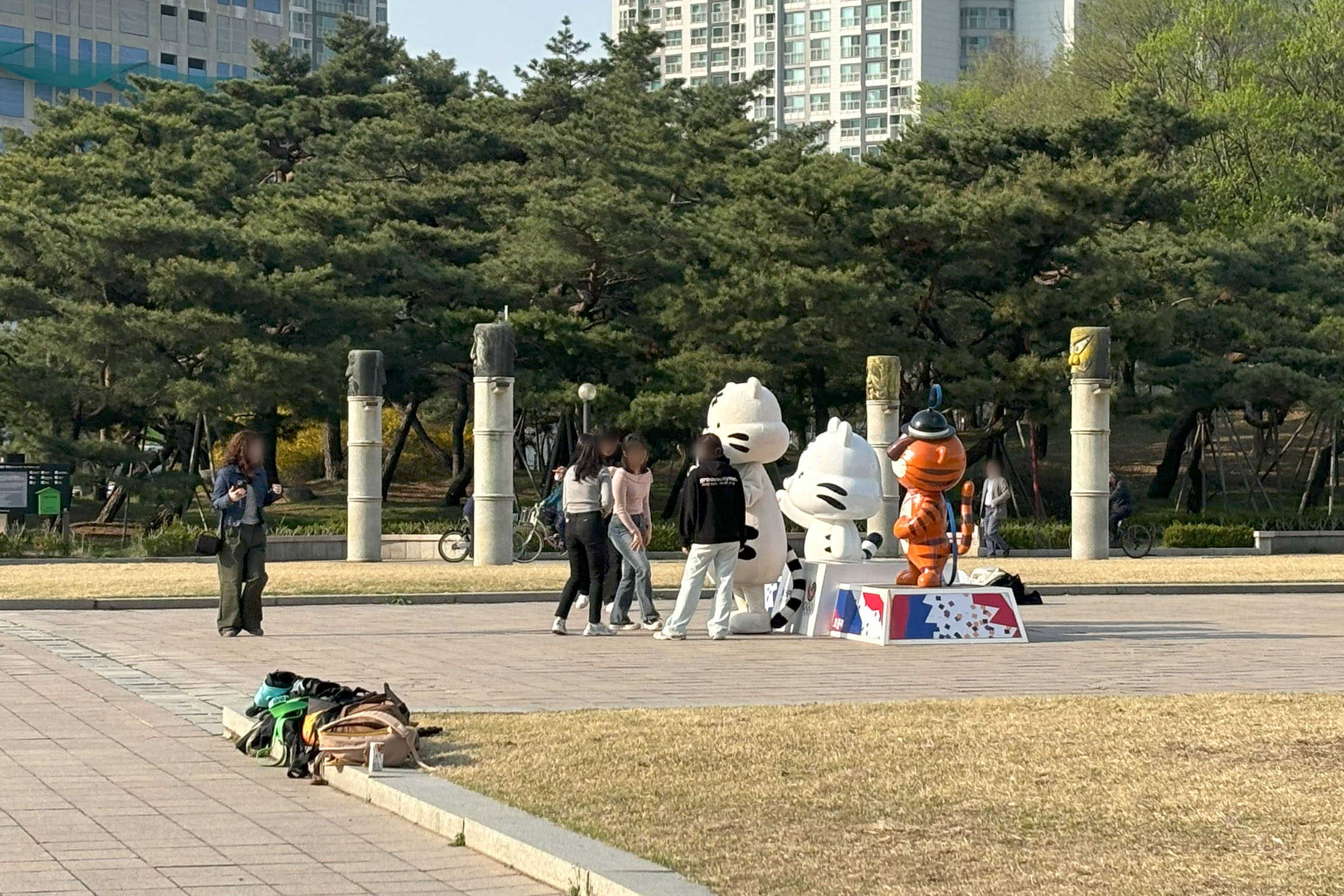 평화의 문 앞에서 백호돌이 인형과 춤추고 있던 젊은 처자들...