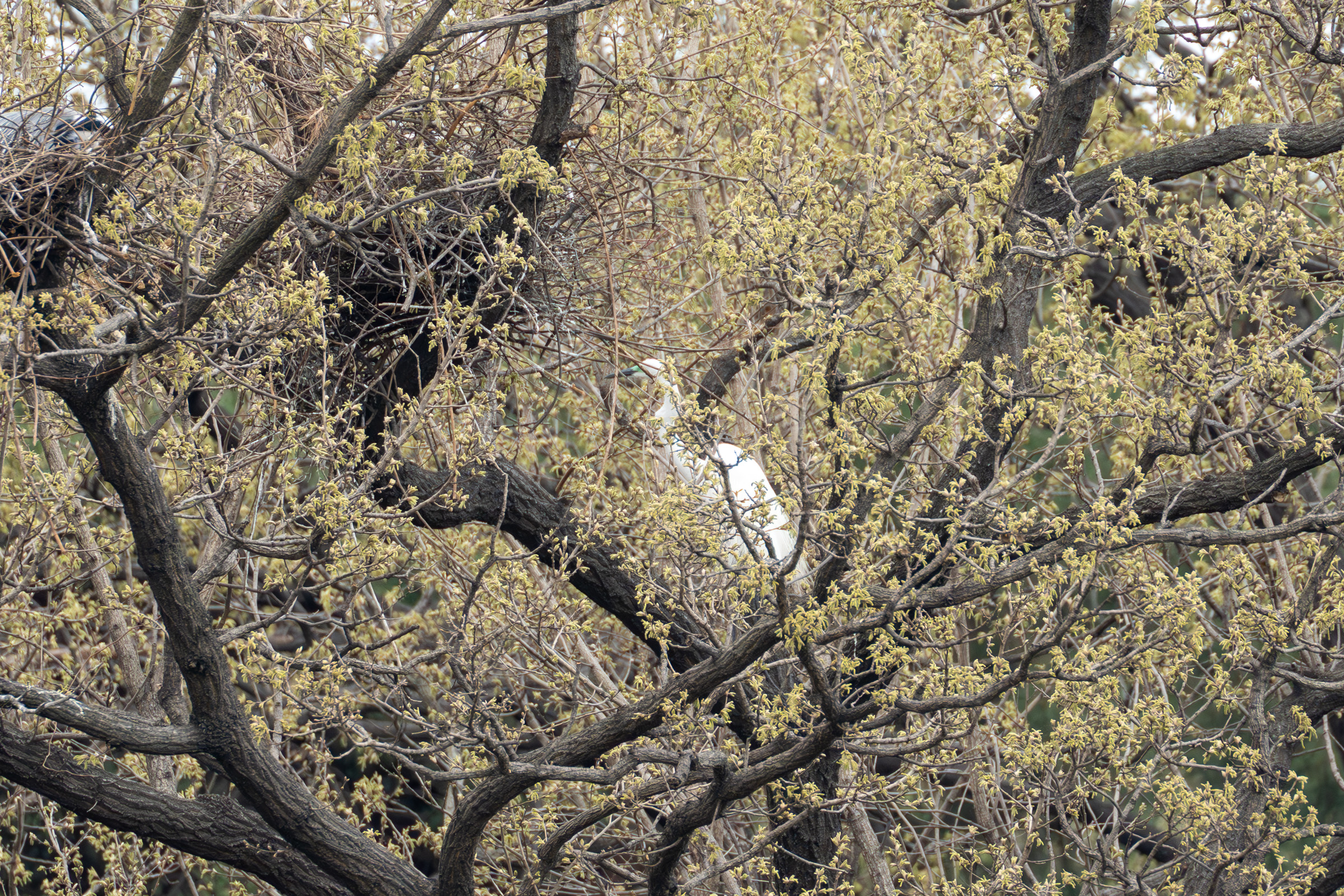 왜가리 나무에는 중대백로들도 둥지를 틀었는지 왜가리랑 이웃사촌이 돼 있었다. 서로 깩깩 거리는 걸 보면 별로 친하진 않은 듯... 많은 나무들 놔두고 굳이 같은 나무에 둥지 트느라 난리인지...